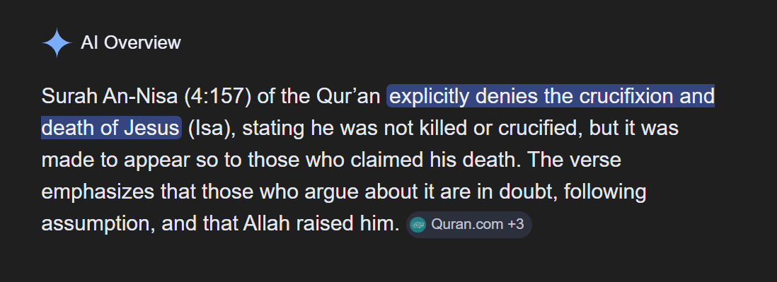 The key verse is: • Qur’an – Surah An-Nisa (4:157)